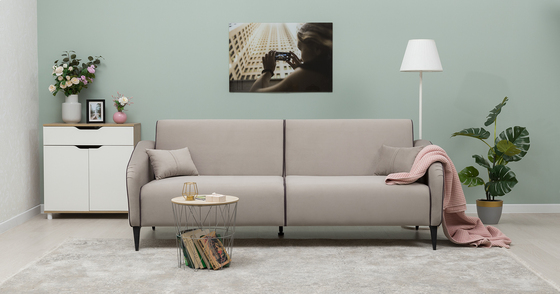 Диван-кровать прямой Монако велюр Вивальди 4 бежевый с пружинным блоком (высота опор - 120 мм)