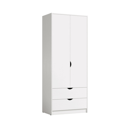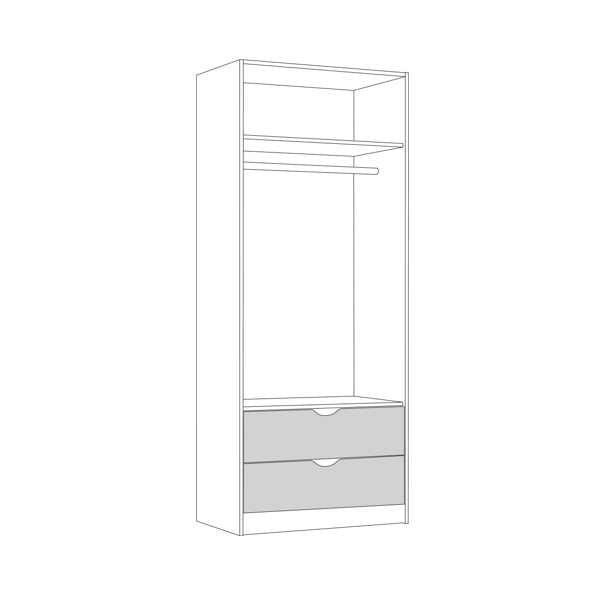 Шкаф для одежды Уна 13.327 - Распашные двери на четырехшарнирных петлях. 2 вместительных выдвижных ящика на шариковых направляющих полного выдвижения. Ручки - вырезы. Поперечная штанга. Корпус: ЛДСП 16 мм. Фасады: ЛДСП 16 мм.