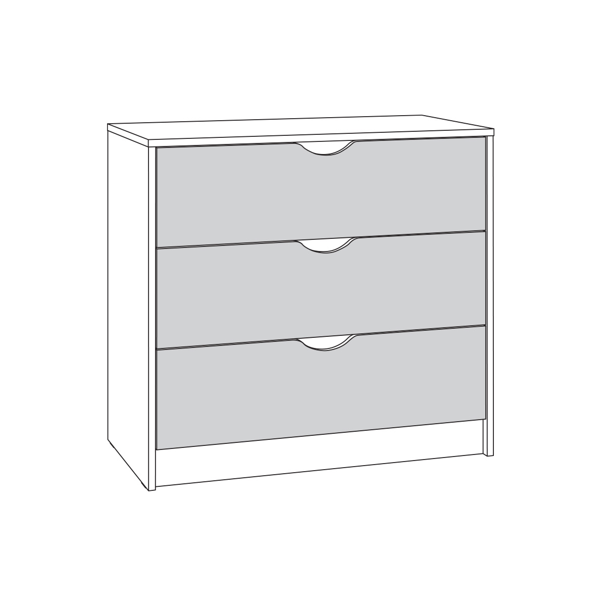 Комод Уна 13.304.01 - 3 вместительных выдвижных ящика на шариковых направляющих полного выдвижения. Ручки - вырезы. Корпус: ЛДСП 16 мм. Фасады: ЛДСП 16 мм.