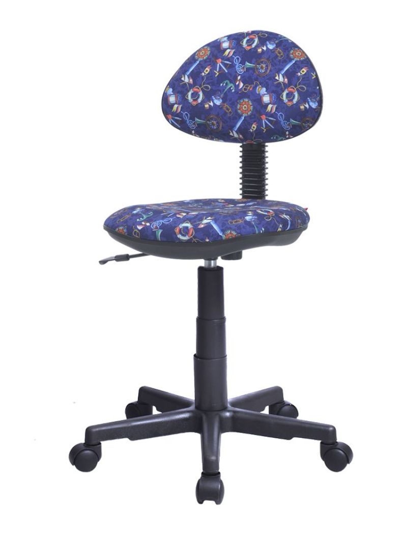 Детское кресло без подлокотников Логика обивка ткань саржа Т45 якоря на синем, крестовина пластик, без качания