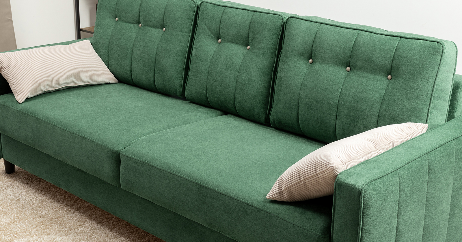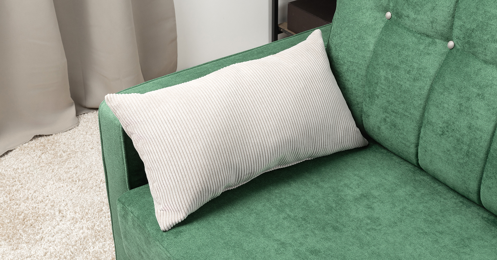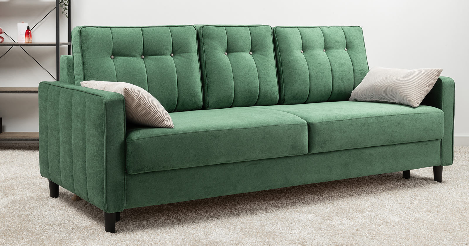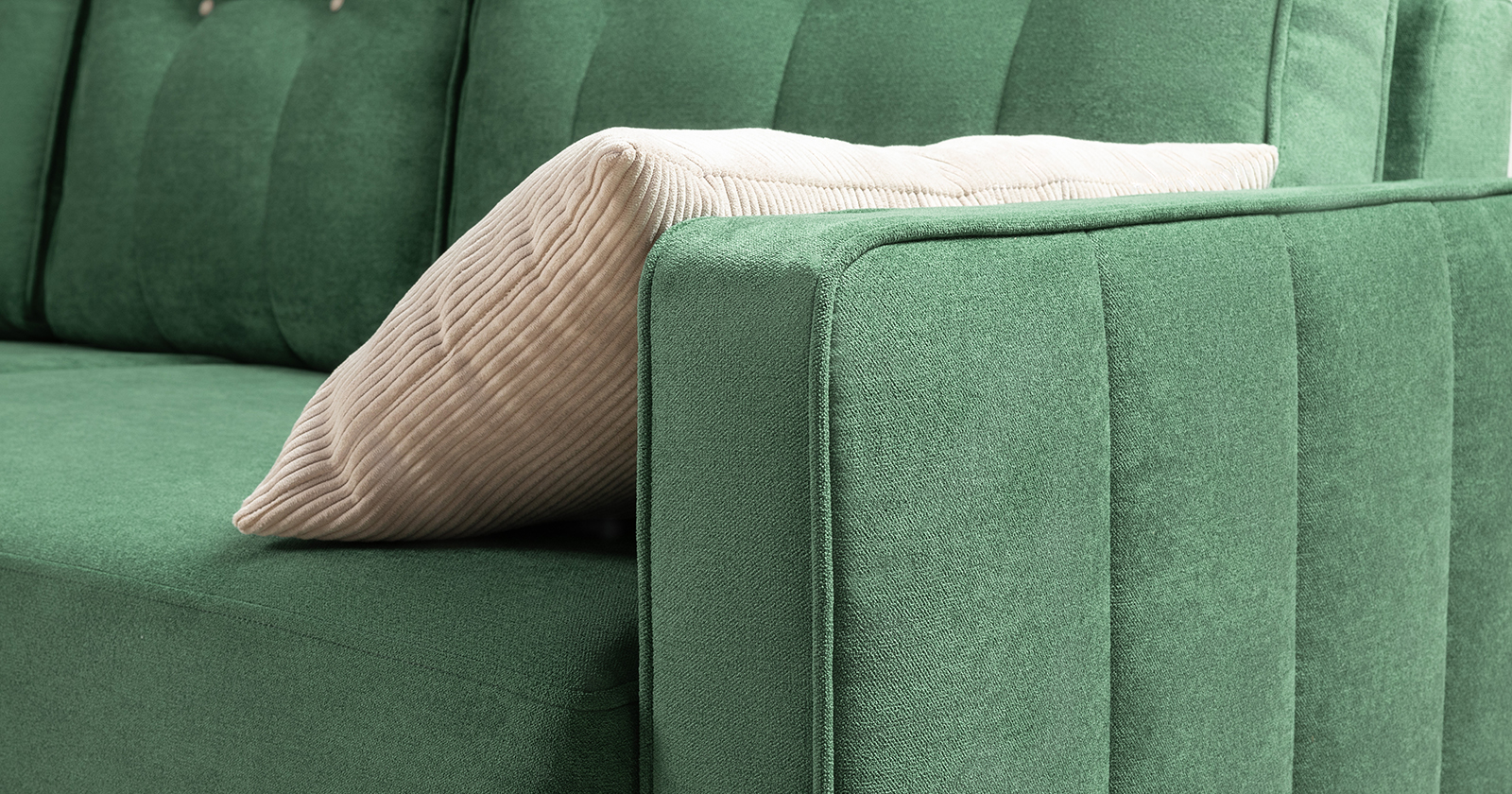 Диван-кровать прямой Арно ТД 566 велюр Лаки 20 хвойный зеленый, Vertical 910 молочно-серый