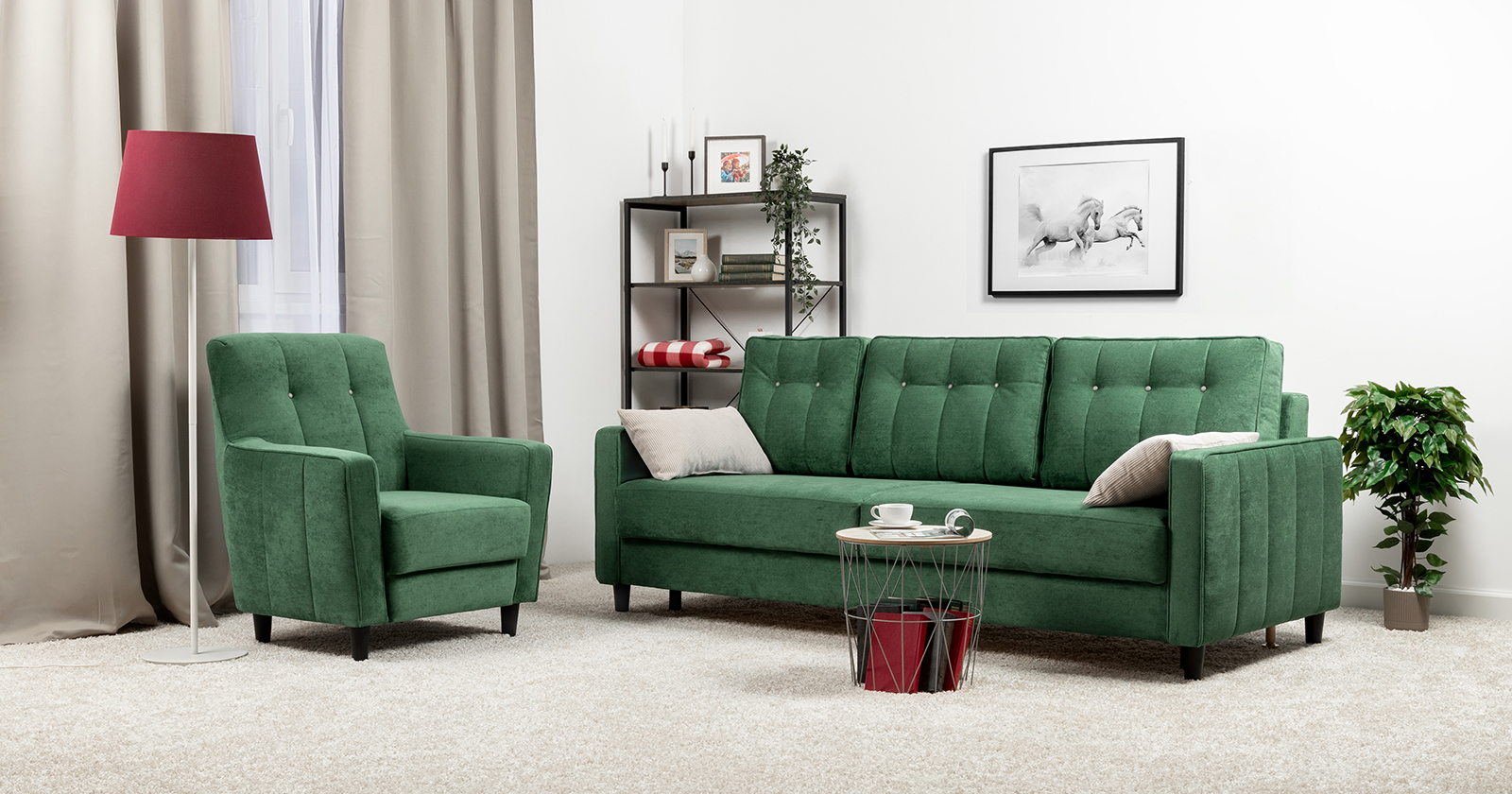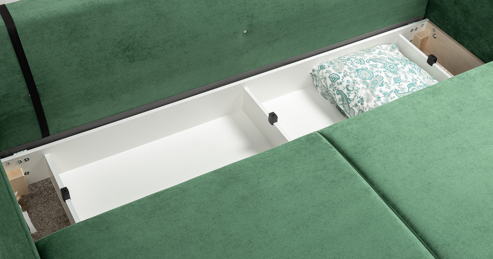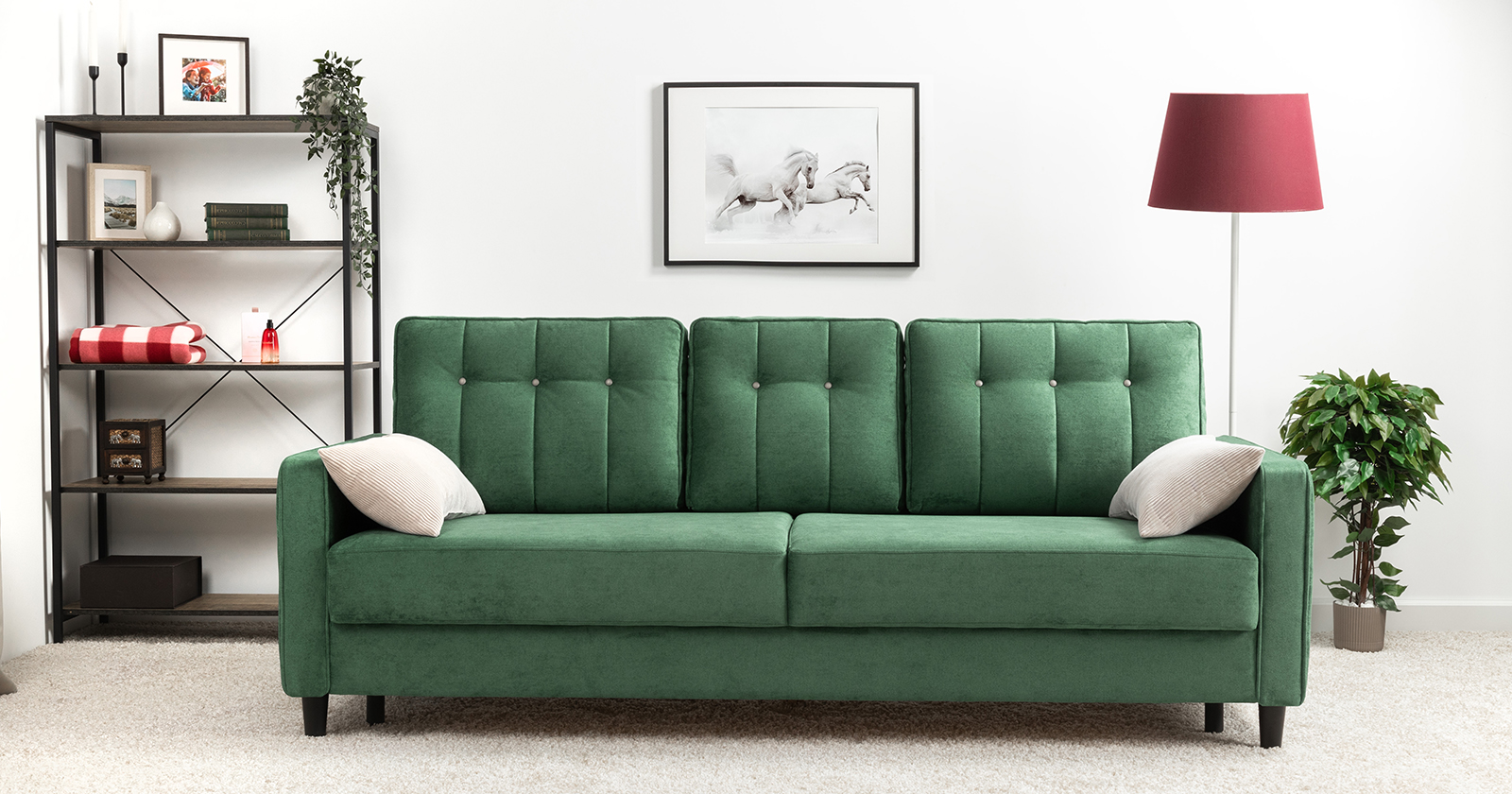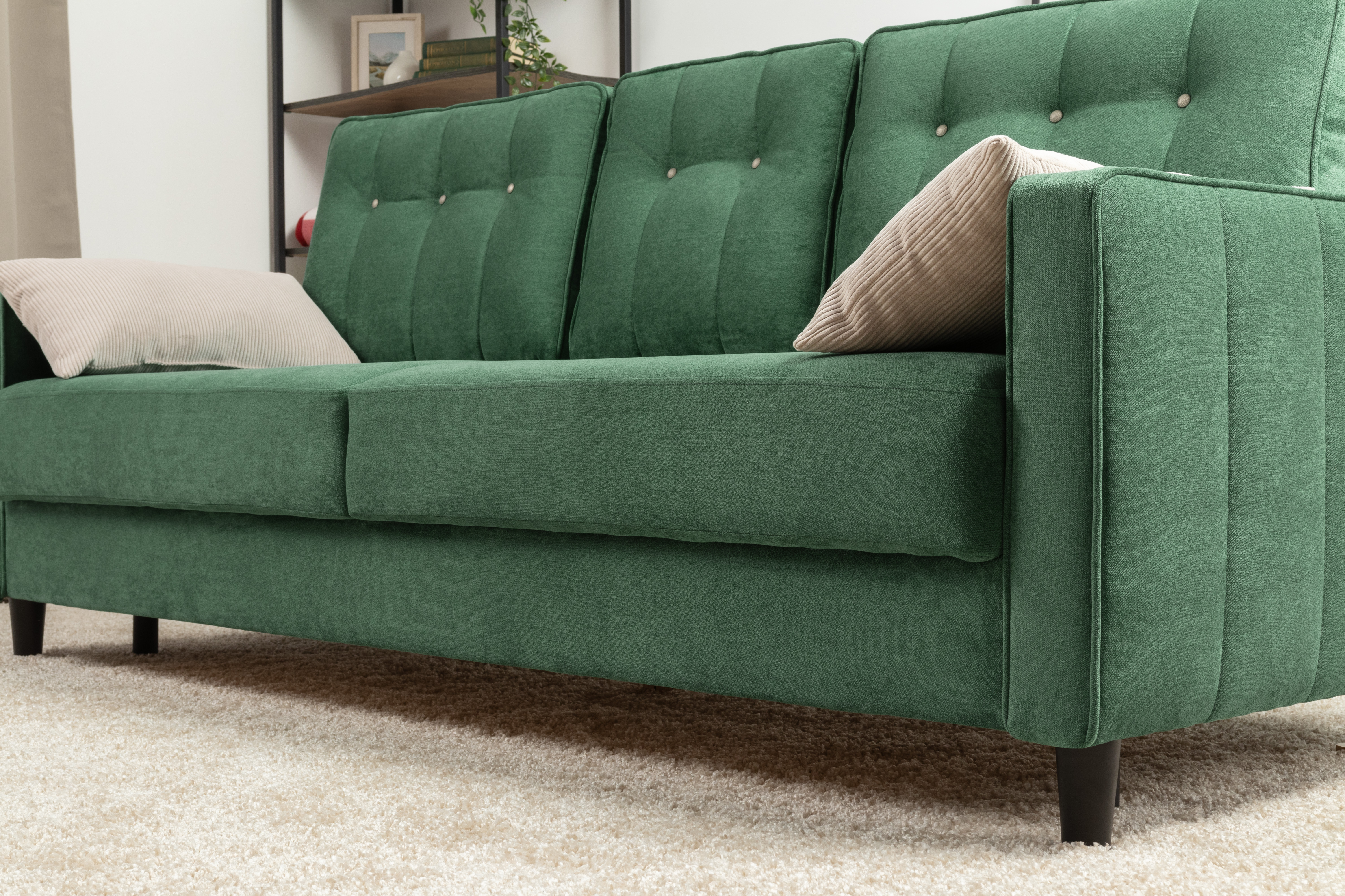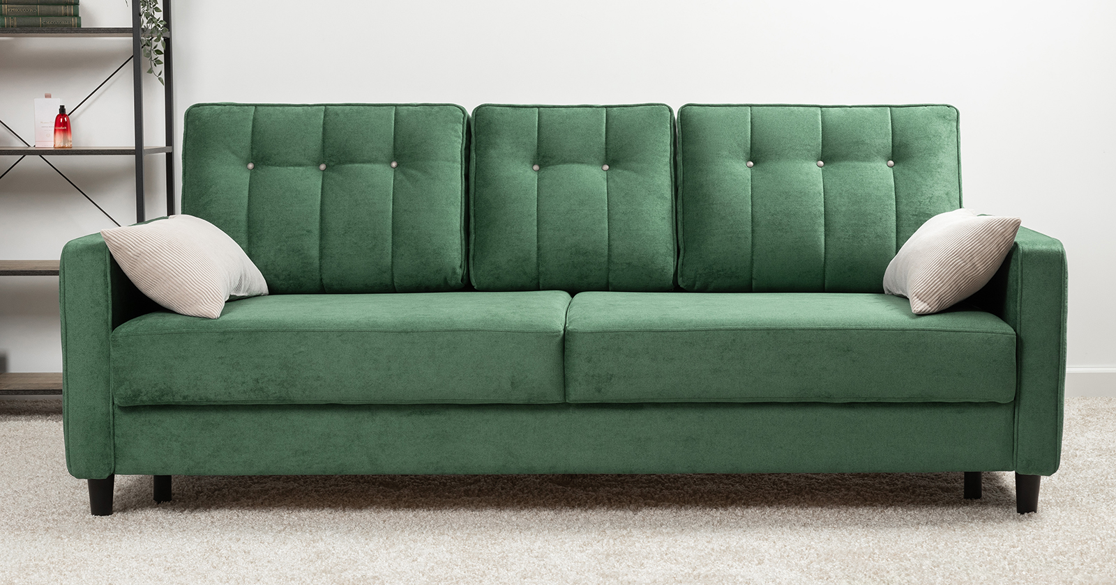Диван-кровать прямой Арно ТД 566 велюр Лаки 20 хвойный зеленый, Vertical 910 молочно-серый