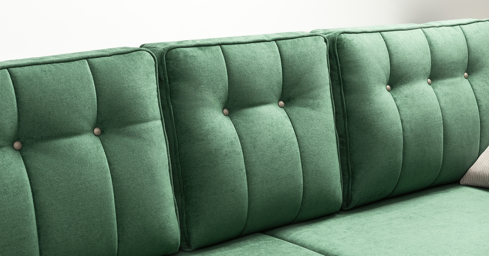 Диван-кровать угловой Арно ТД 566 велюр Лаки 20 хвойный зеленый, Vertical 910 молочно-серый, сборка на любую сторону