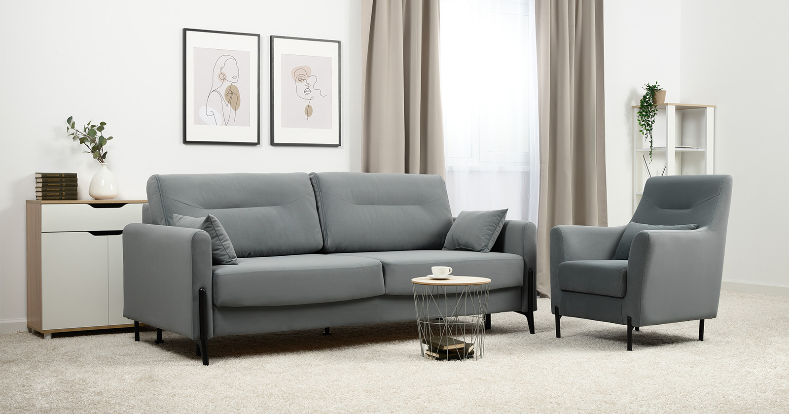 Барселона - современный диван, стиль которого удачно подчеркнут элегантными металлическими опорами.