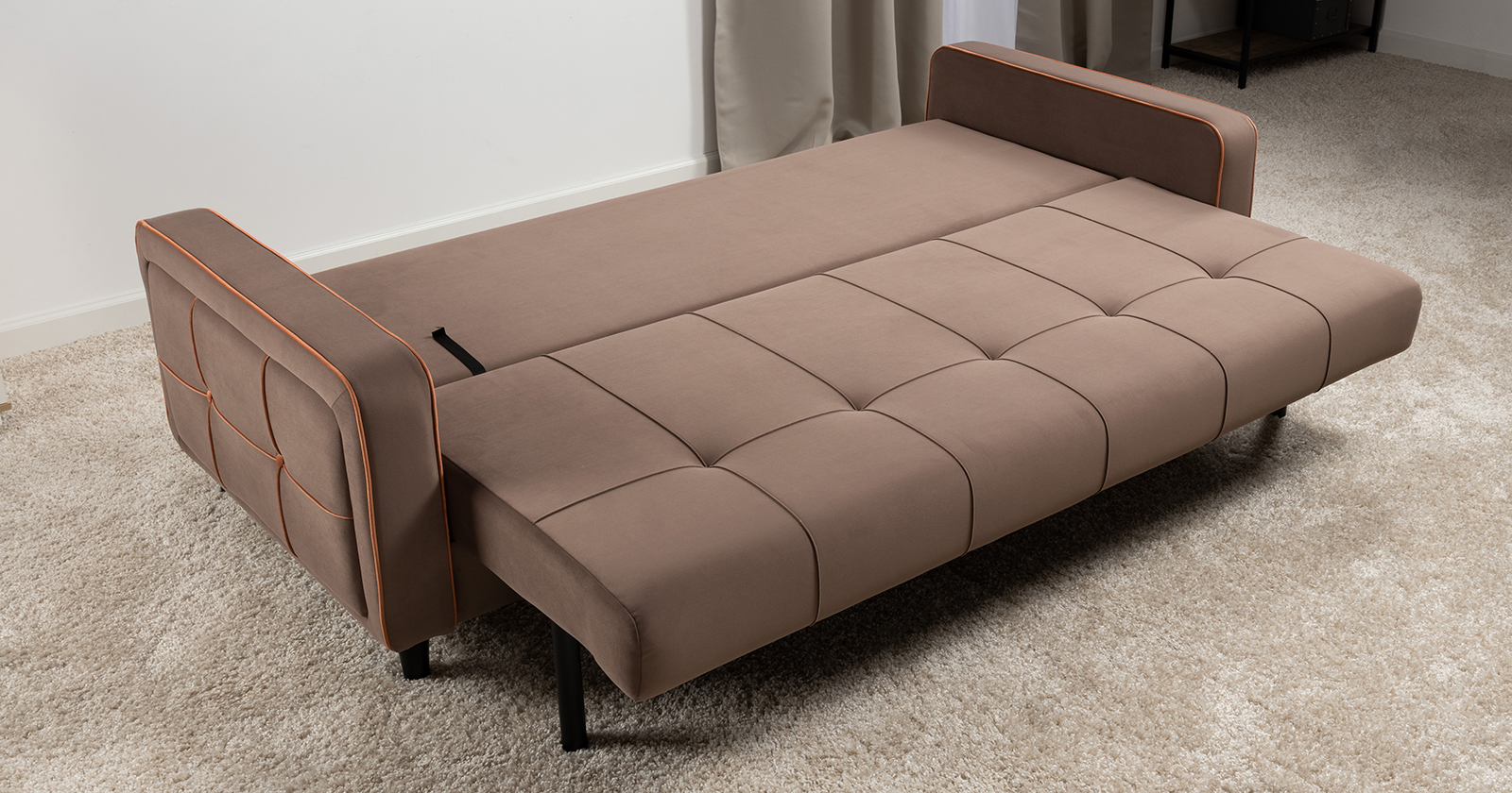 Диван-кровать прямой Черри ТД 286 велюр Irida 05 шоколадно-коричневый, Эвита терра терракотовый