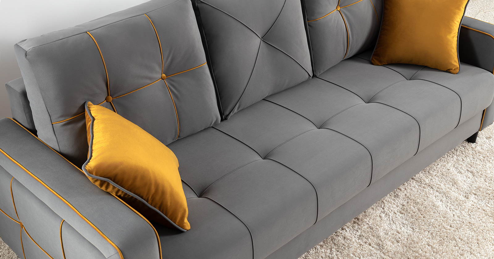Модные диваны Черри Н порадуют поклонников современного стиля. Контрастные канты, пуговицы и декоративные подушки делают этот диван ярким акцентом интерьера.