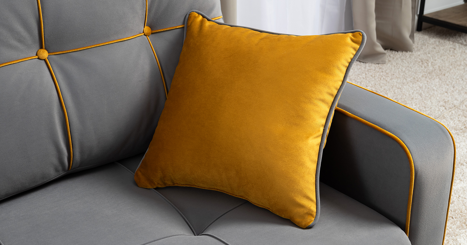 Диван-кровать прямой Черри ТД 287 велюр Irida 21 серый, Эвита умбер горчичный