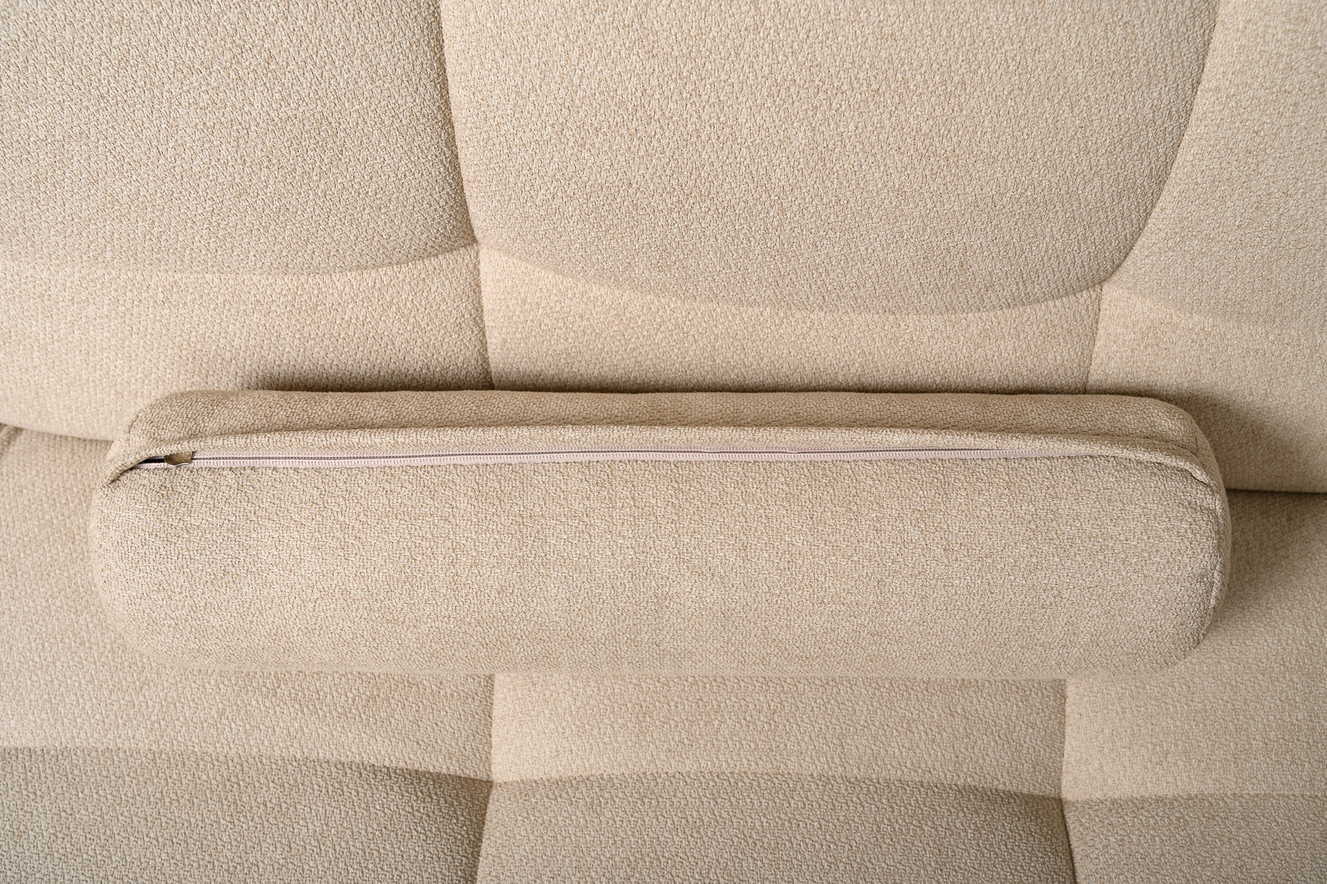 Прямоугольная стежка по спинке, посадочному месту и подлокотниках, круглые подушки-валики