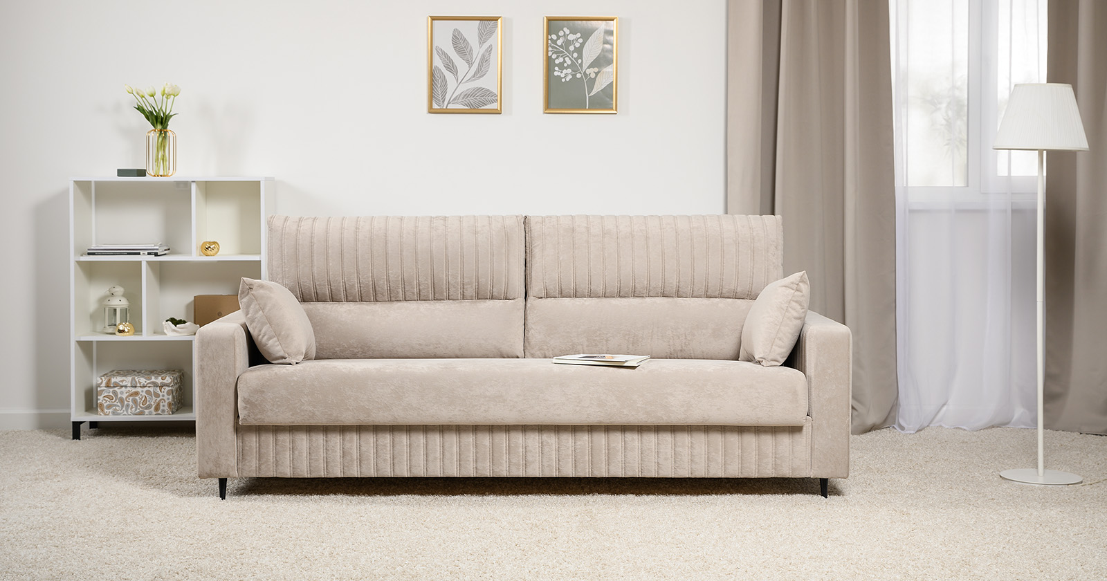 Диван-кровать прямой Изабель ТД 738 велюр Романс пебл бежевый
