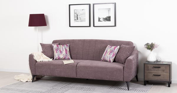 Диван-кровать прямой Наоми ТД 481 шенилл приглушенный пурпурный, микровелюр ягодный