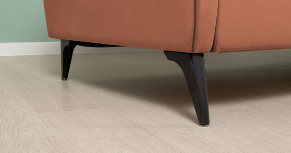 Спинка и сиденье разделяются пополам двойным кантом по центру и одинарным по краям сидения, для придания одной единой формы. Подлокотники с изгибом на лицевой стороне и мягкими закругленным углом со складками, с выраженным контрастным ровным кантом по внешнему контуру изделия и изогнутой линией канта.