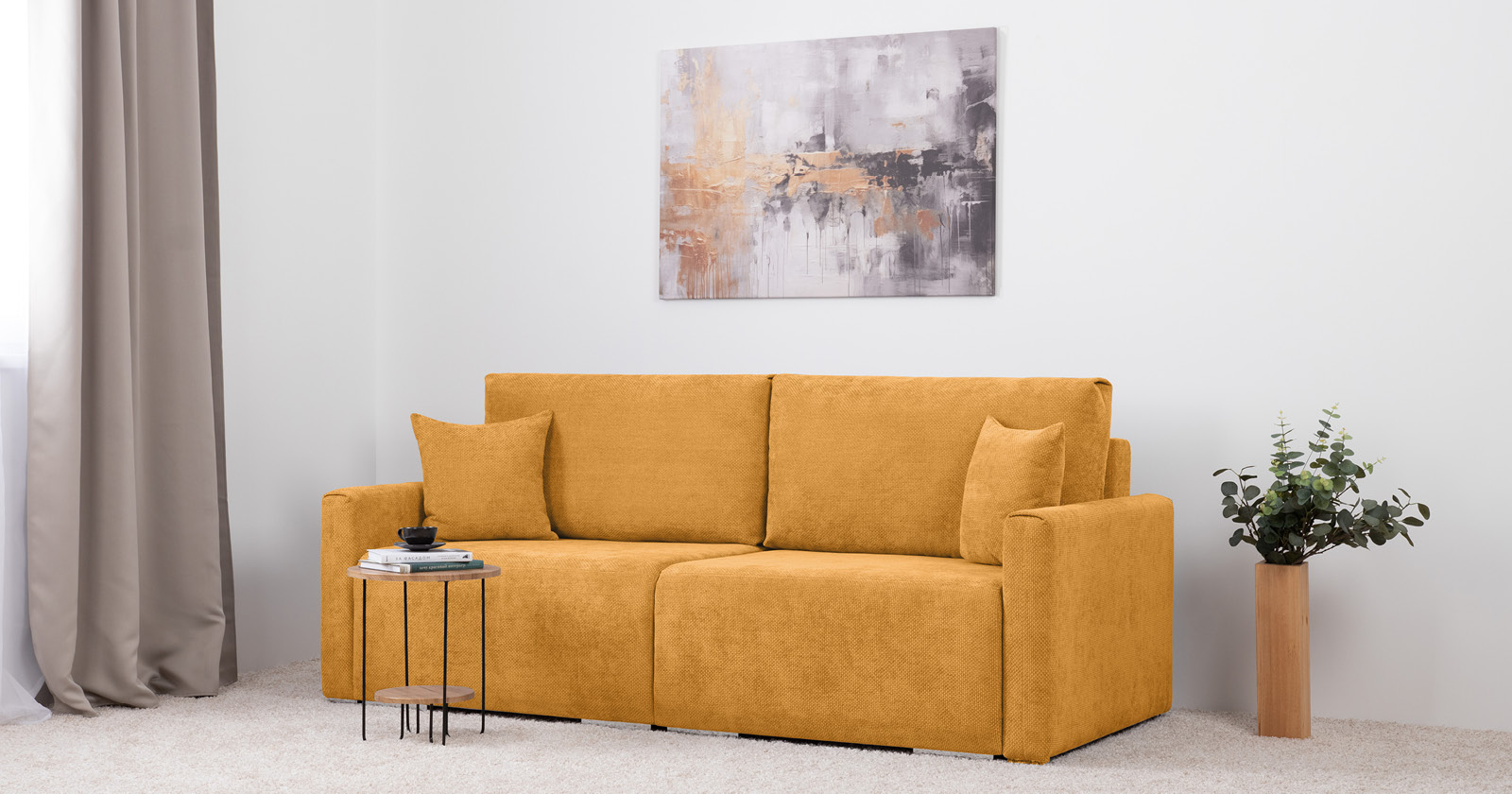 Диван-кровать прямой Оксфорд 714 композиция 3, STORM 8 горчичный, модульная система
