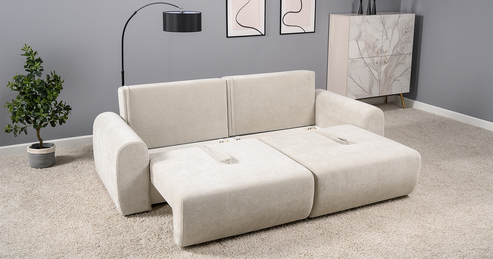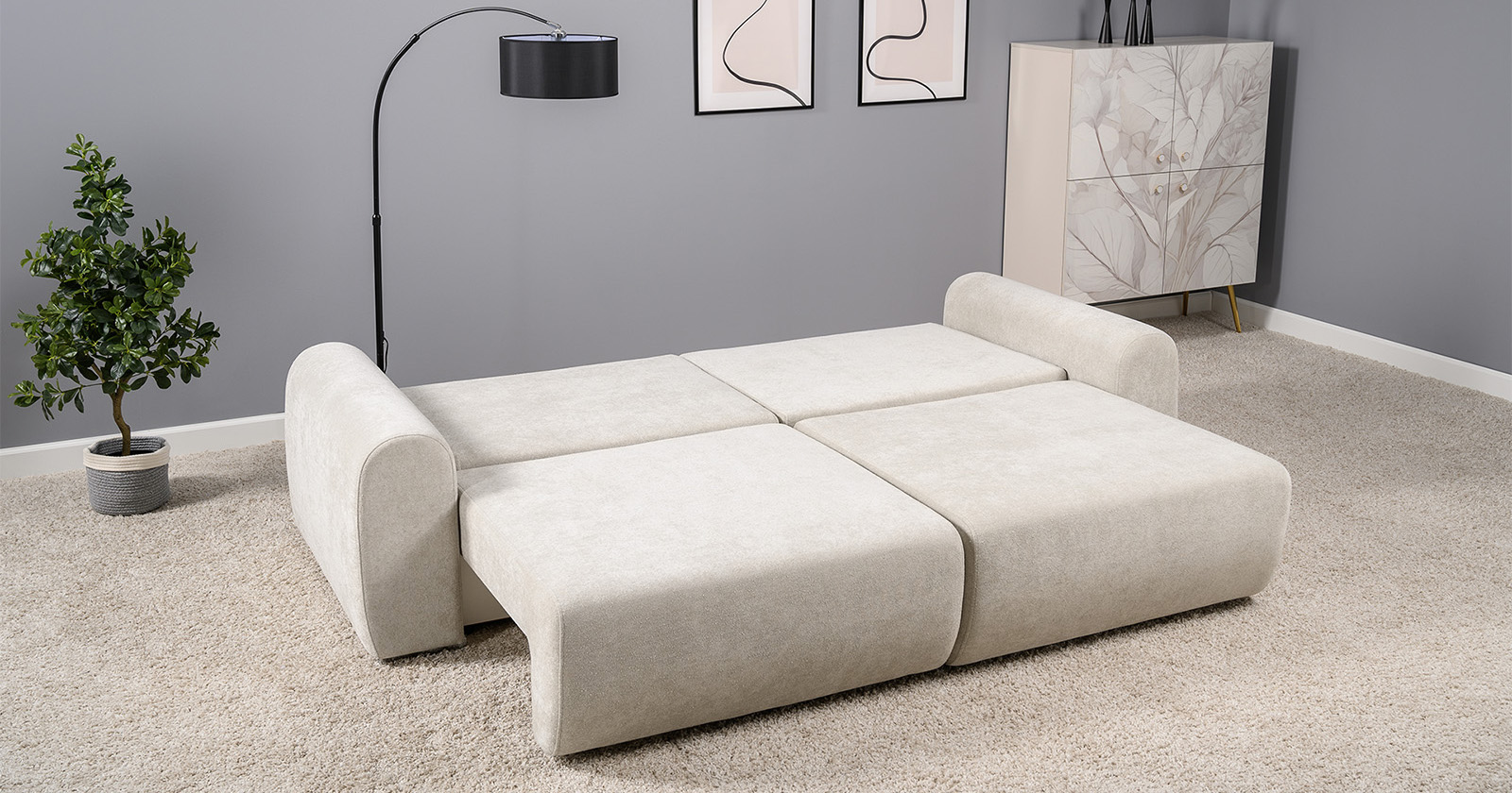 Диван-кровать угловой Тэдди 1502 композиция 2, букле Pique 006 бежевый, модульная система, сборка на любую сторону