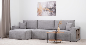 Диван-кровать угловой Оксфорд 712 композиция 2, MUZA 07 светло-серый, модульная система, сборка на любую сторону