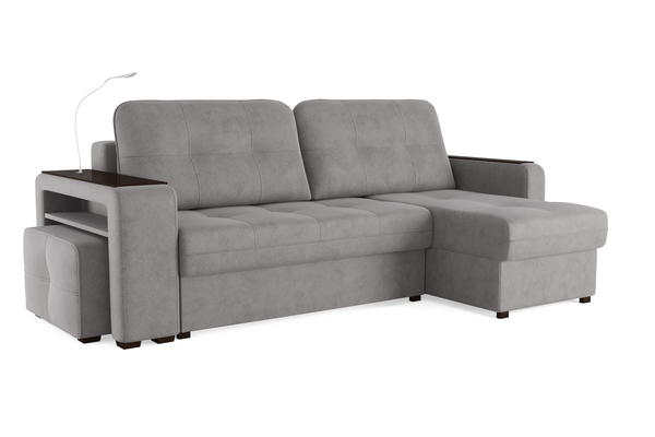 Баланс между эстетикой и функциональностью — основное требование к современной мебели. Мягкая мебель должна быть не просто красивой, но прежде всего удобной и функциональной. Особенно если речь идет о маленьких квартирах, где гостиная может быть одновременно и спальней, и кабинетом. С этой задачей прекрасно справится диван «SMART 4». Уникальный  дизайн делает модель по-настоящему универсальной. Одна боковина оснащена карманом для хранения мелочей и гаджетов, другая боковина совмещает одновременно: рабочую поверхность, за счет широкой накладки, двойной  usb - порт  и портативную лампу точечного света, которая входит в комплект. Добавить контрастных деталей в интерьер поможет пуф, интегрированный в подлокотник. Этот вариант для современных людей, которые ценят комфорт и удобство отдыха.