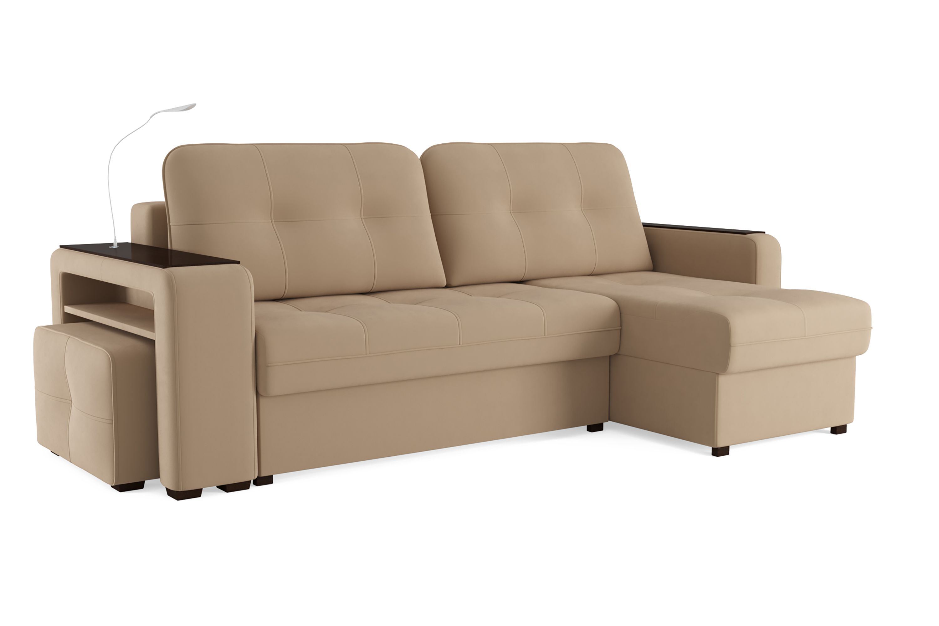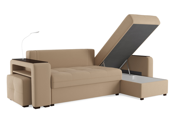 Диван-кровать угловой SMART 4 правый, велюр Velutto 05 бежевый (Б4-2Т-1Пф-Б3)