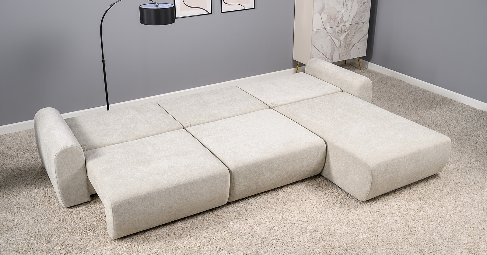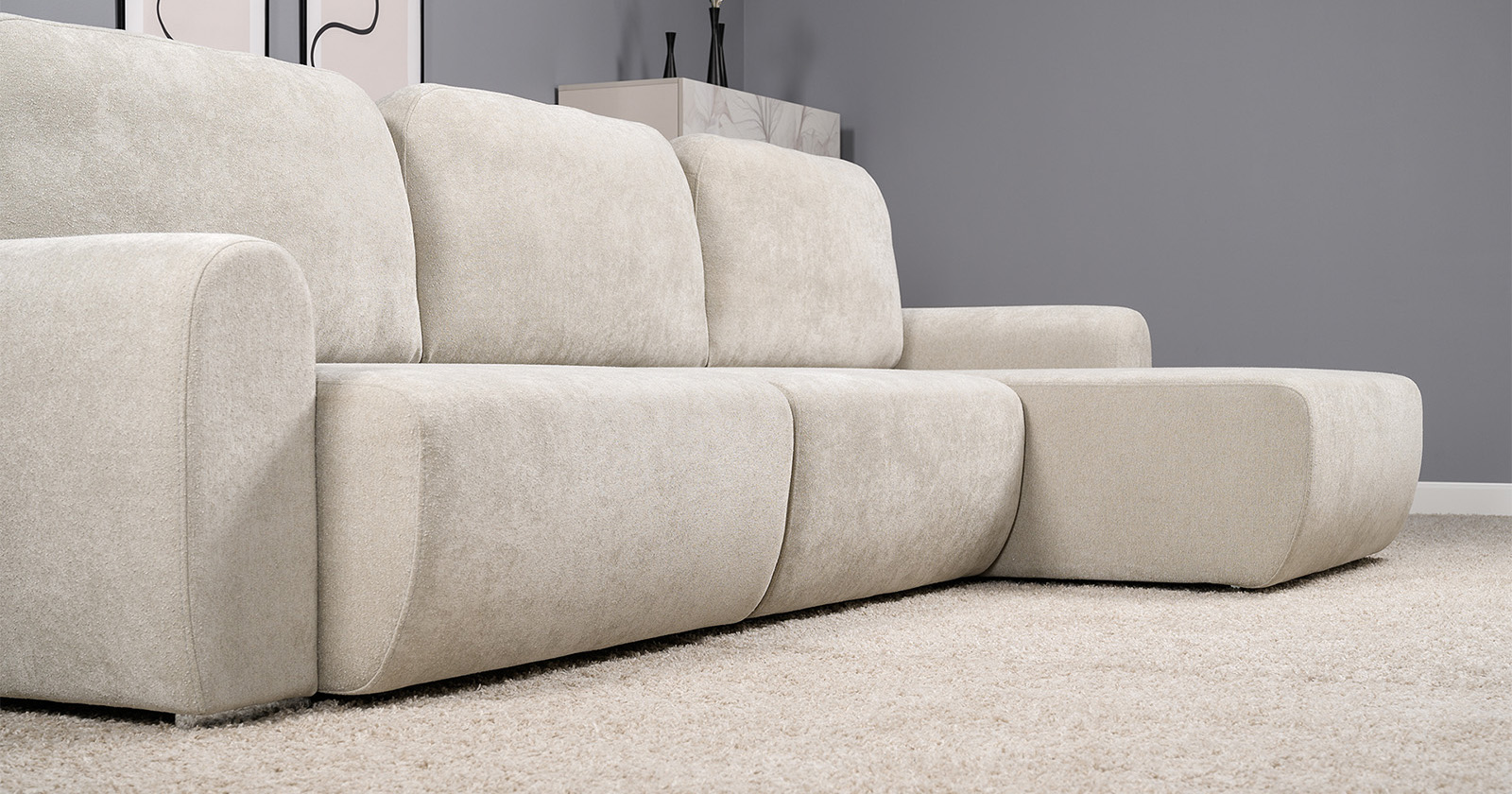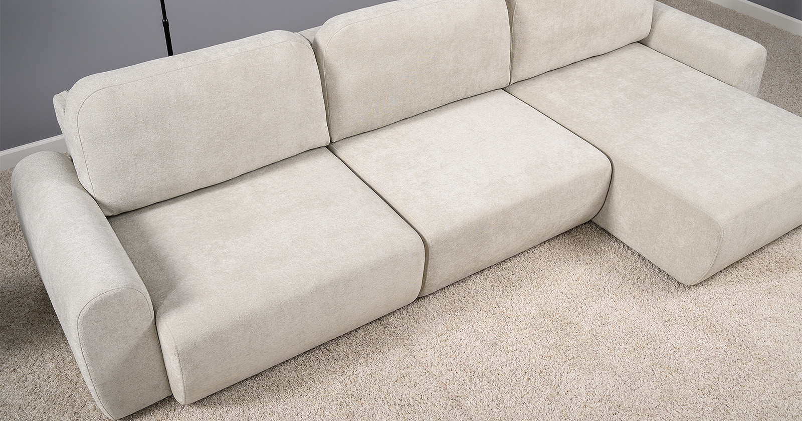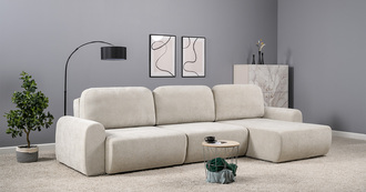 Диван-кровать угловой Тэдди 1502 композиция 2, букле Pique 006 бежевый, модульная система, сборка на любую сторону