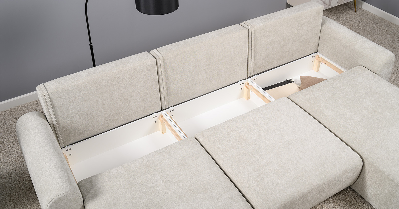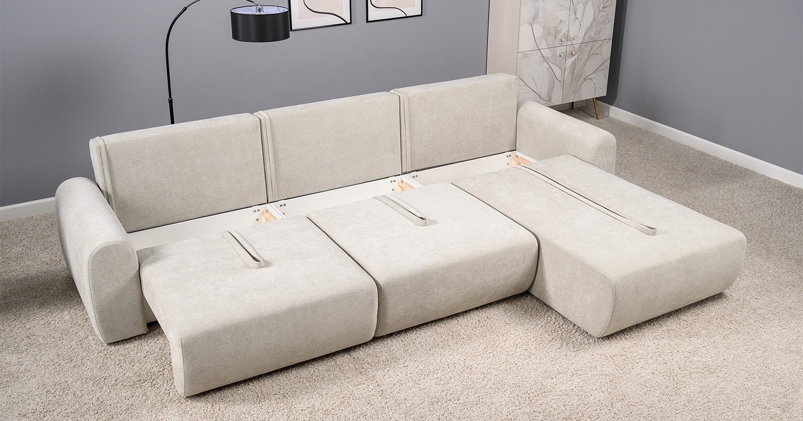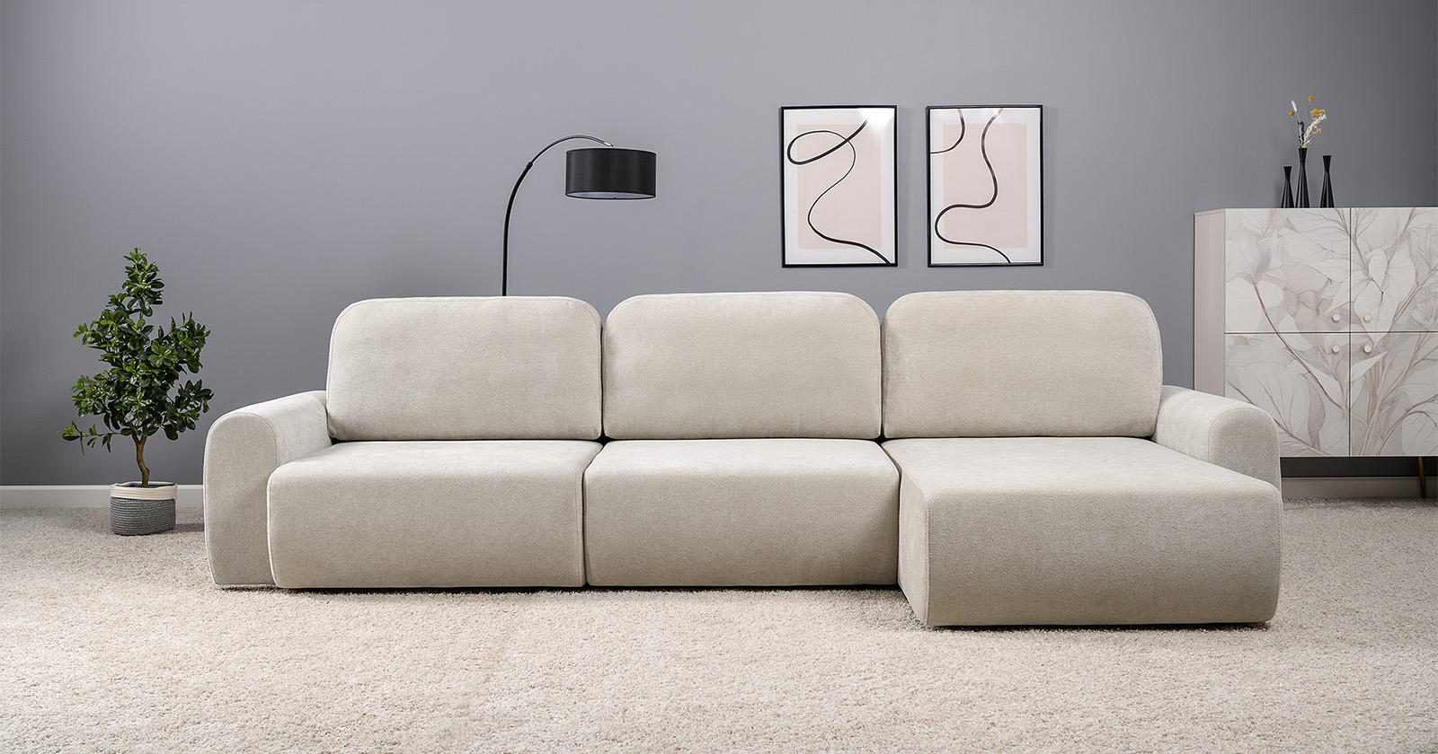Диван-кровать угловой Тэдди 1502 композиция 2, букле Pique 006 бежевый, модульная система, сборка на любую сторону