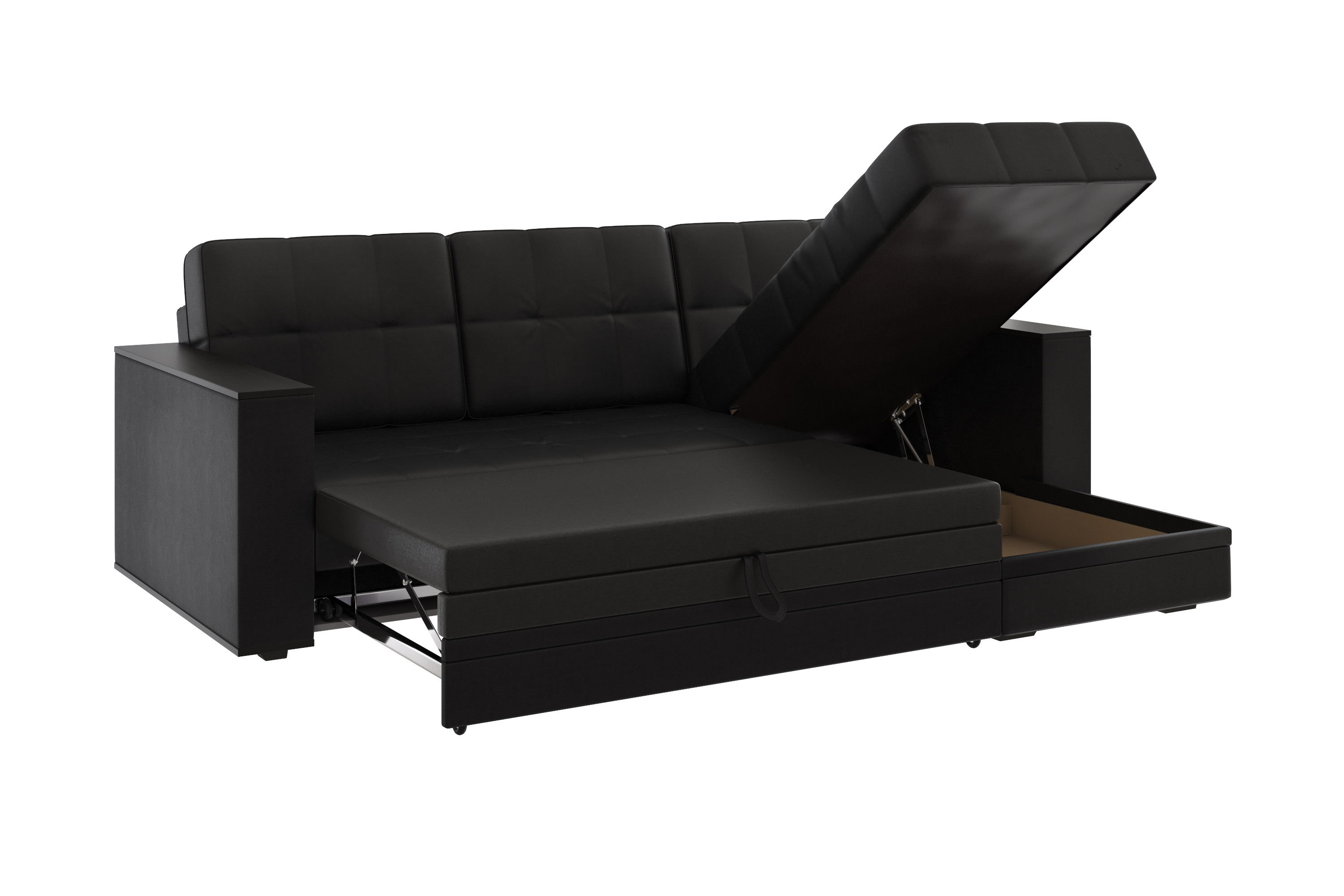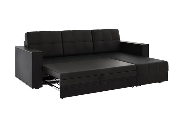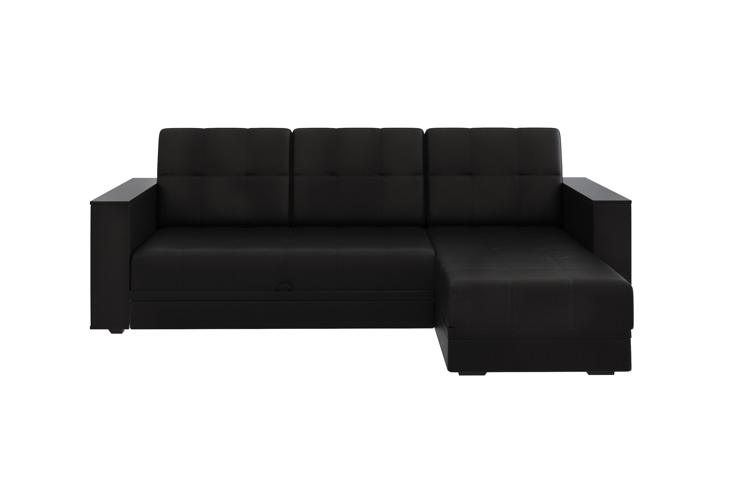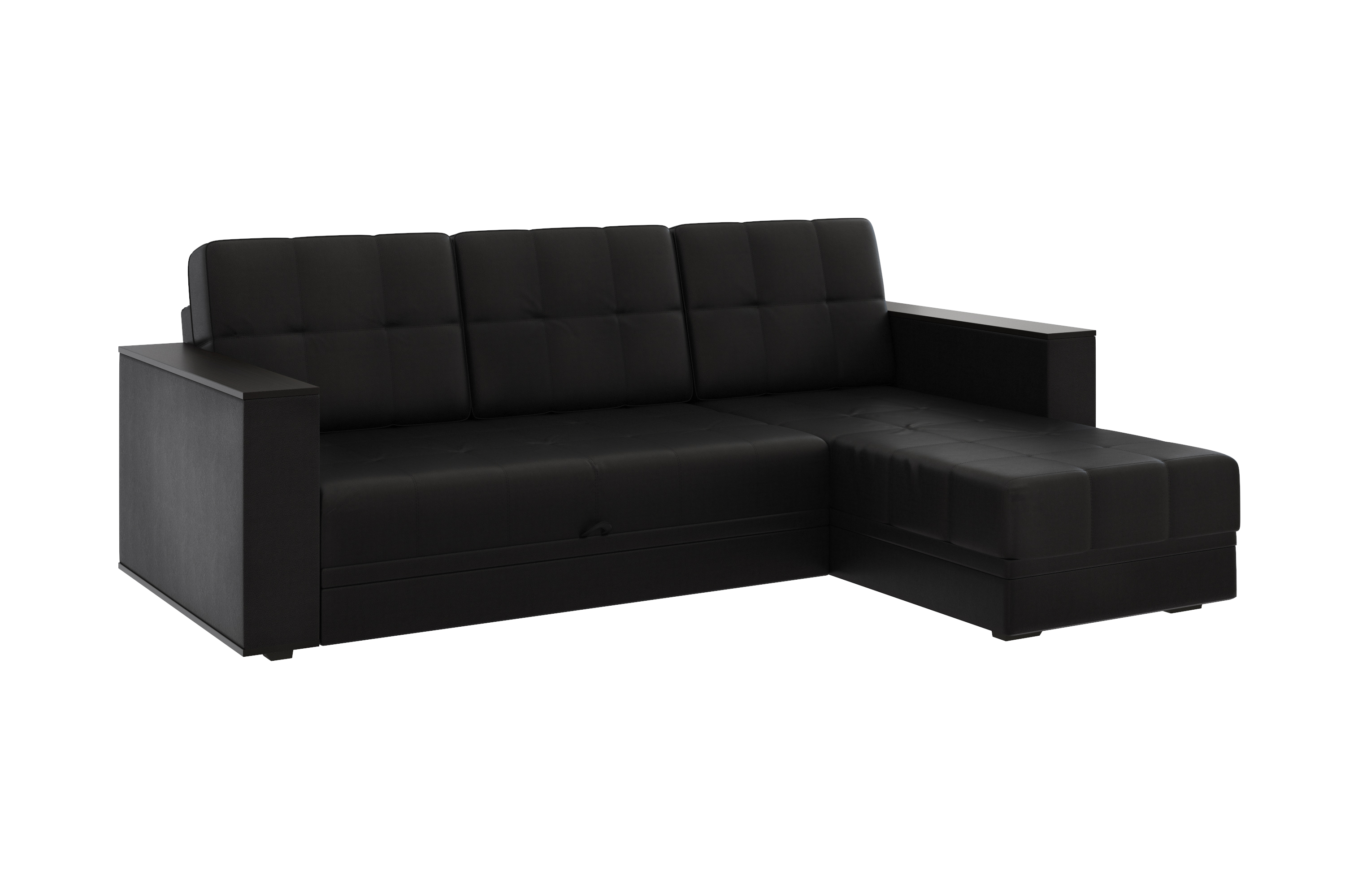 Диван-кровать угловой Атлант кожзам черный со спальным местом (сборка на любую сторону)