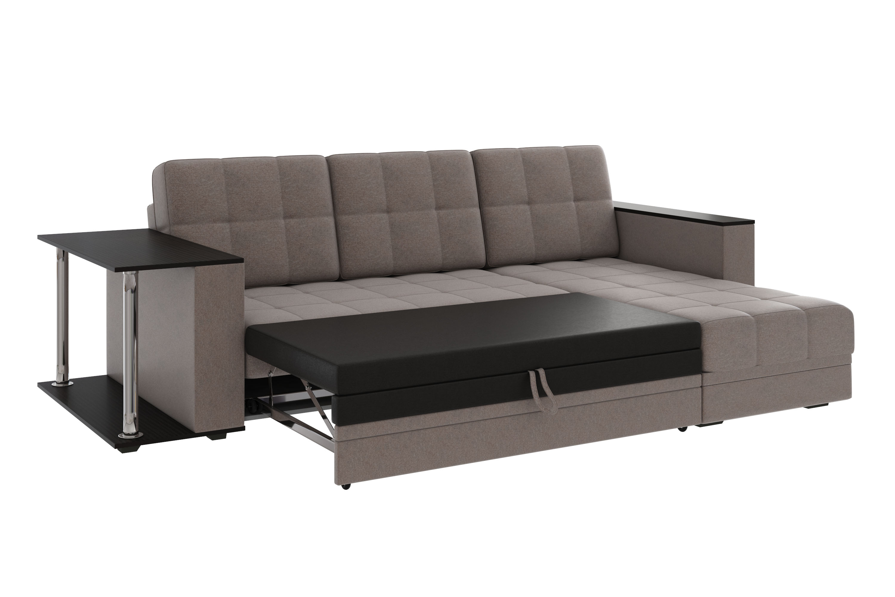 Диван-кровать угловой Атлант ткань рогожка темно-бежевый (кофе) со столиком Венге со спальным местом (собирается на любую сторону)