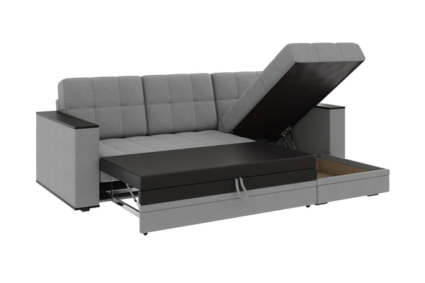 Диван-кровать угловой Атлант велюр светло-серый со спальным местом (сборка на любую сторону)