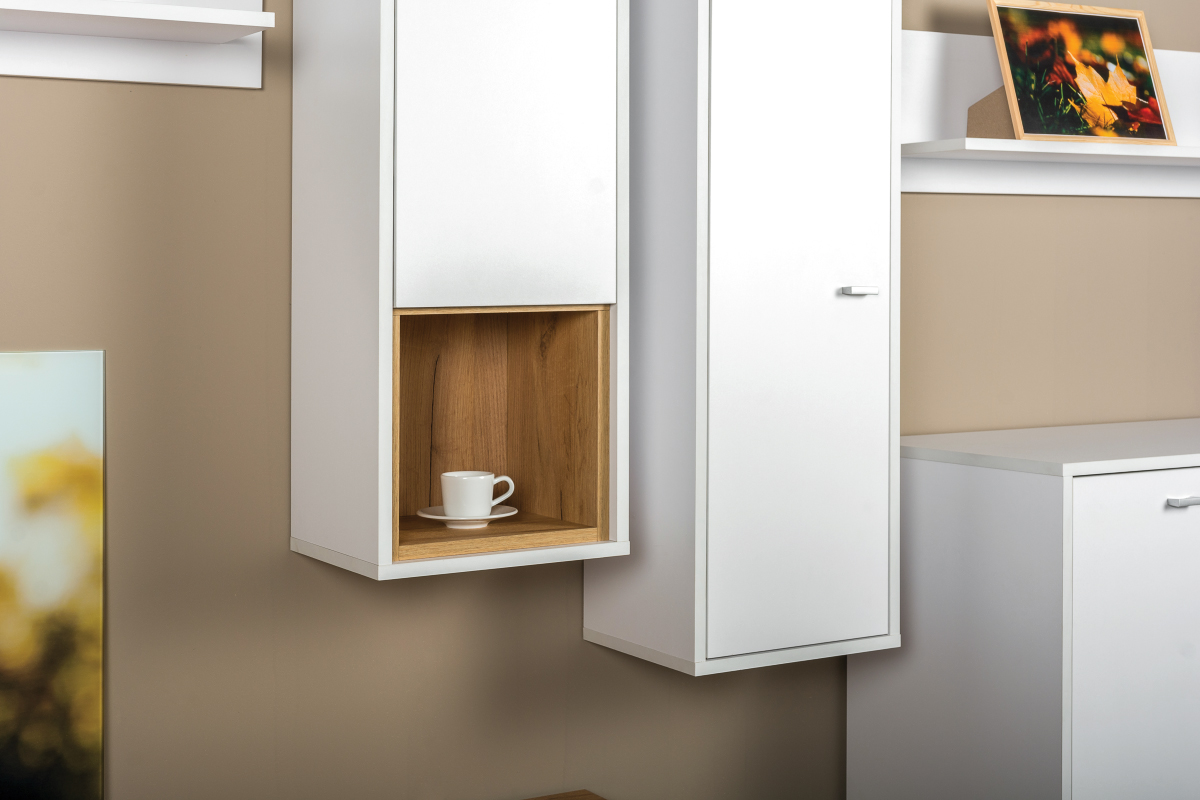 Гостиная Альба композиция 1 дуб золотой CRAFT, белый премиум, без подсветки