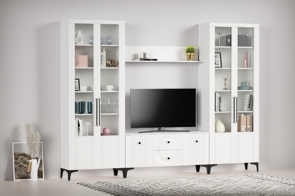 Тумба под ТВ в гостиную Валенсия 16.45 белый PE шагрень, белая шагрень ПВХ