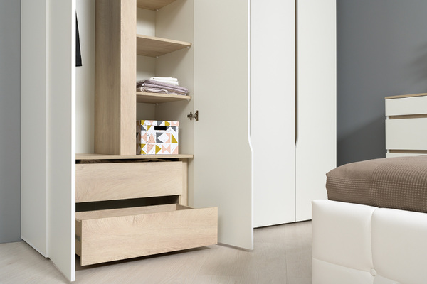 Шкаф двухстворчатый Муссон 13.198 белый PE шагрень, дуб эндгрейн элегантный