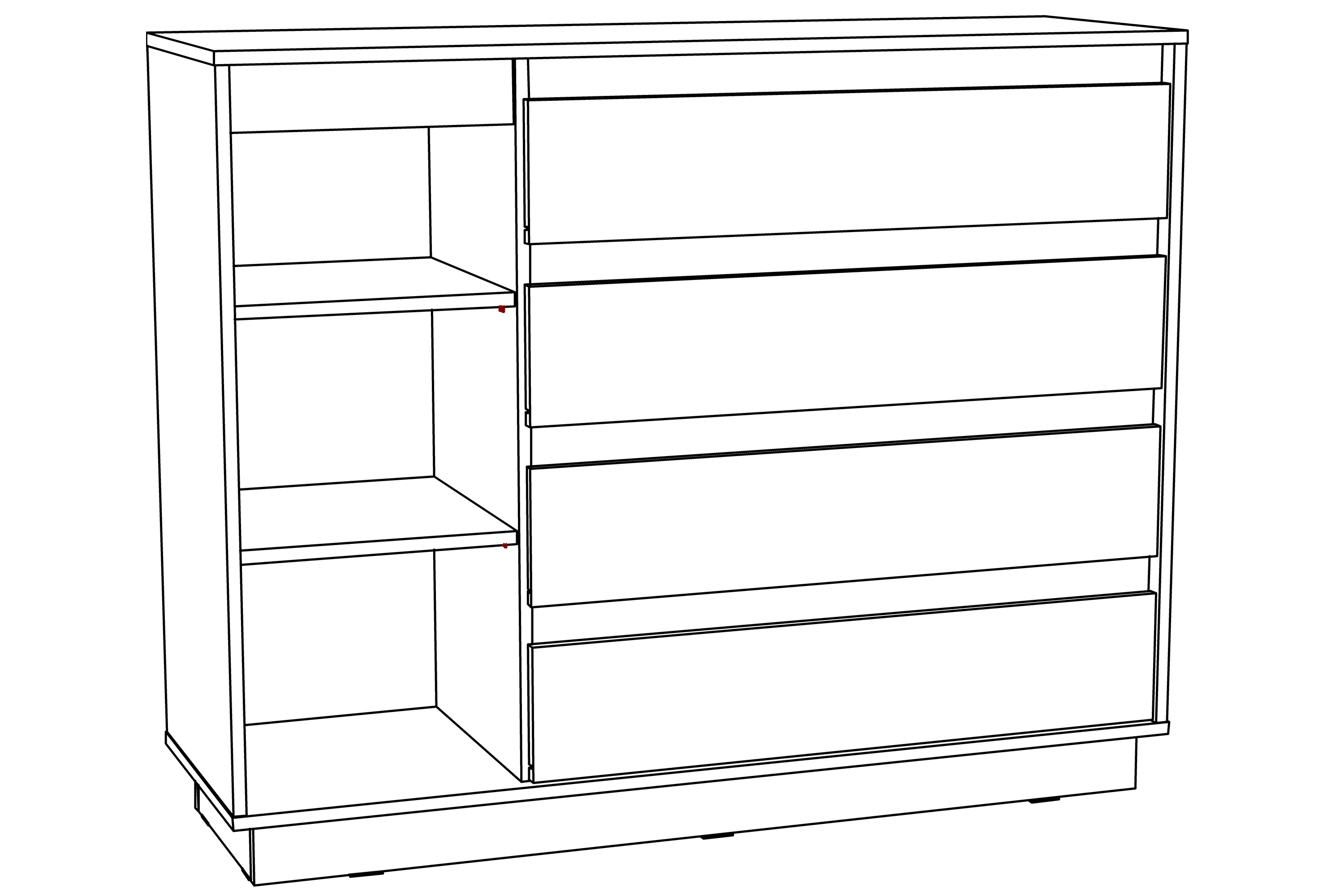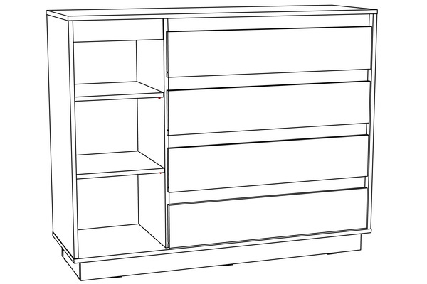 В комоде VIRGINIA НМ 011.01 кроме стандартной секции с выдвижными ящиками предусмотрен отдел с полками, который обеспечивает дополнительное место для хранения. Именно поэтому в данном модуле можно разместить большое количество вещей. Максимальный обзор содержимого в сочетании с высокой надежностью гарантируют шариковые направляющие полного выдвижения.