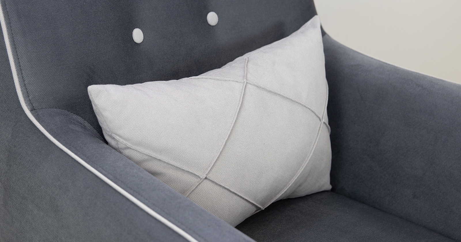 Декоративный кант на кресле, защипы на декоративной подушке, пуговицы на спинке
