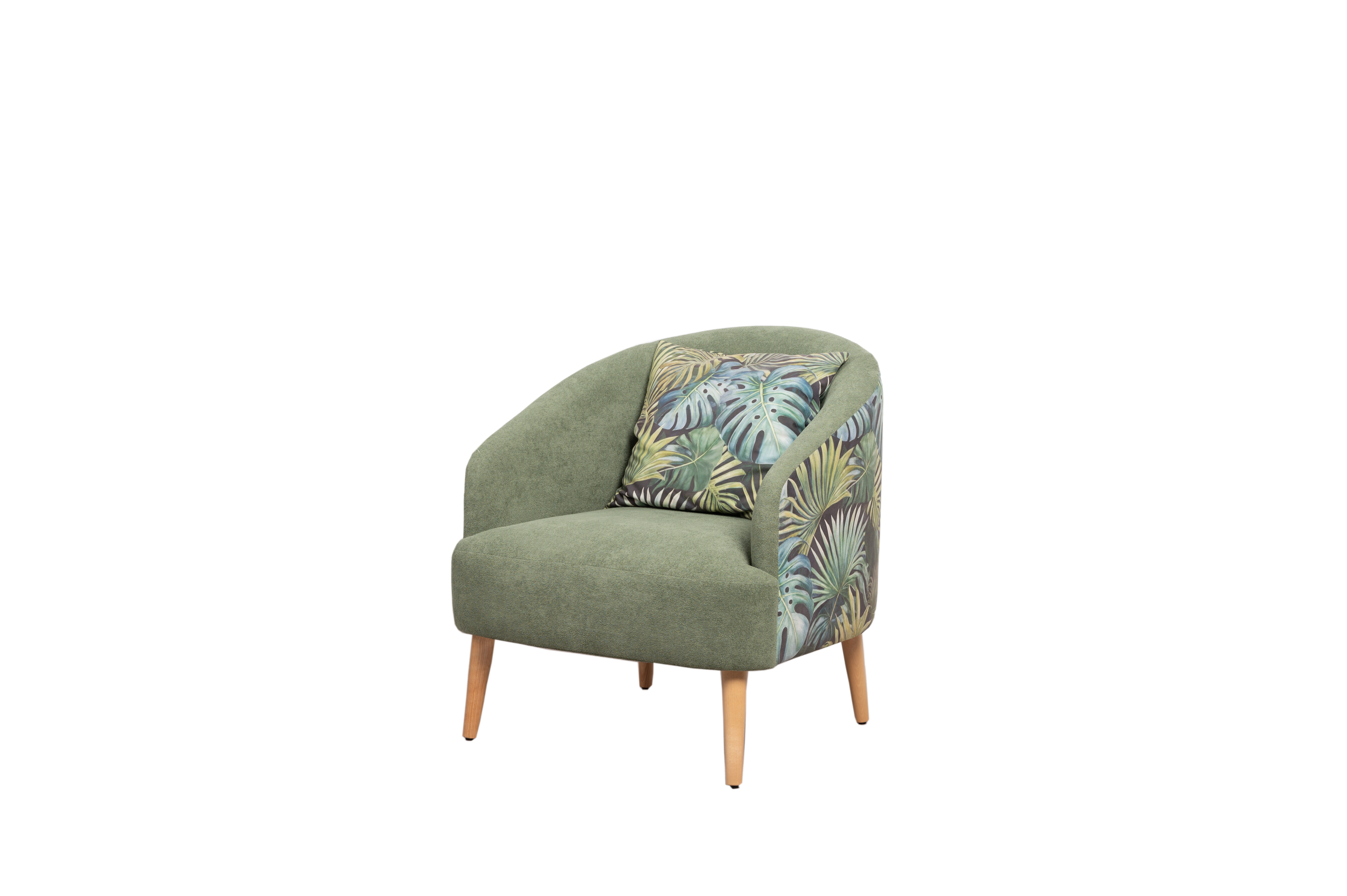 Маттиас — оригинальное кресло готовое стать акцентом в интерьере. Яркий тропический принт «монстера» на спинке мгновенно сделает комнату живой и современной.