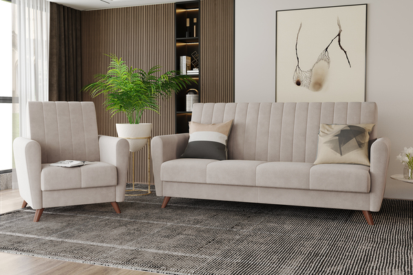 Кресло для отдыха Монако велюр Вивальди 4 бежевый с пружинным блоком (высота опор - 120 мм)