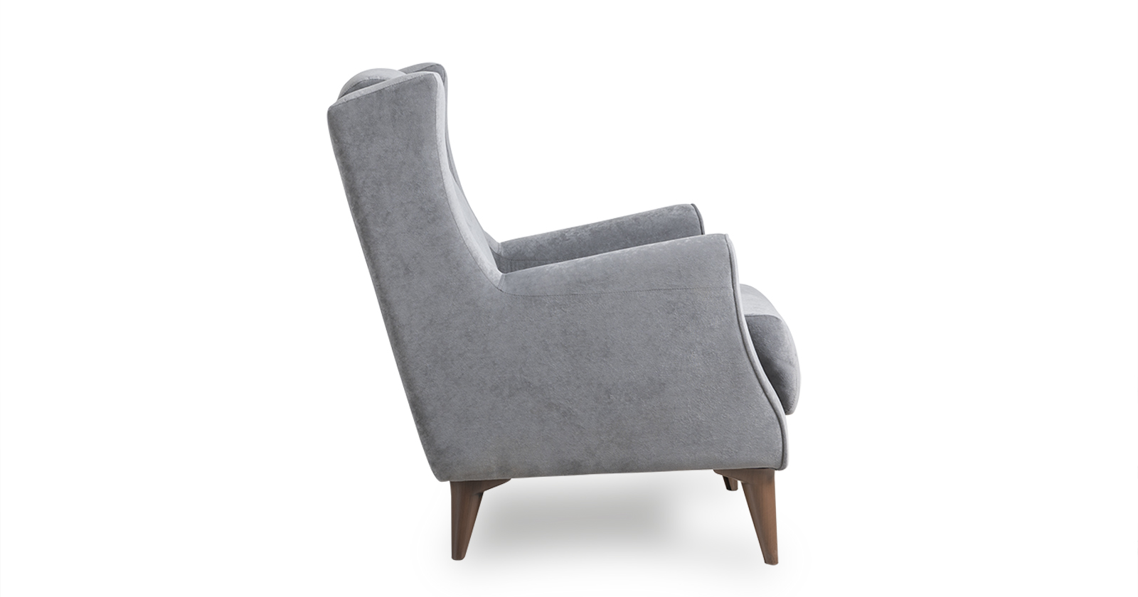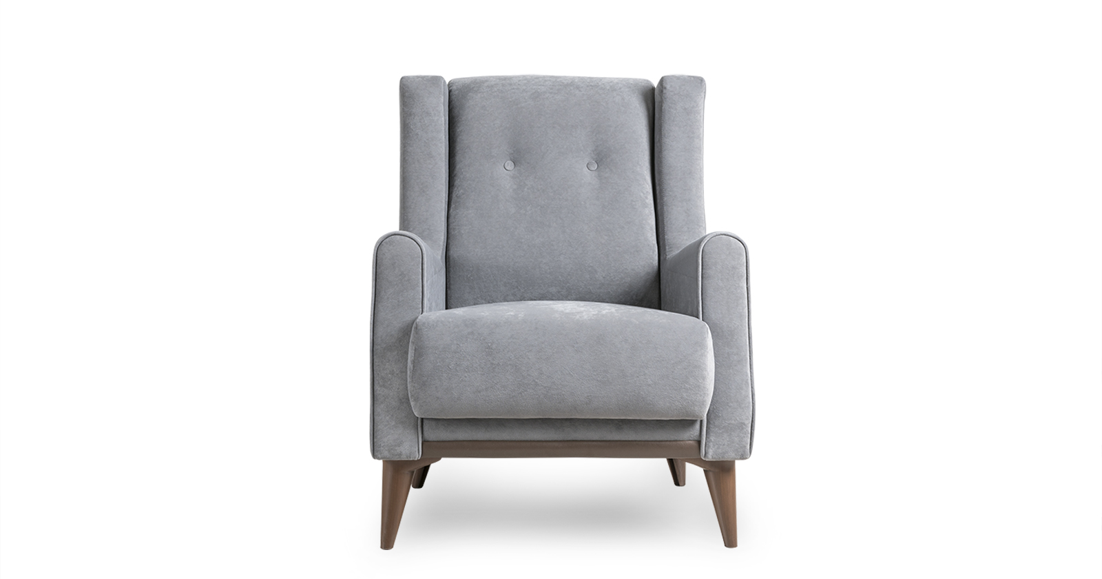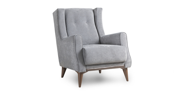 Декоративный кант из основной ткани по переднему торцу подлокотника; Утяжка спинки на 2 декоративные пуговицы из основного материала; Декоративный элемент царги из материала-компаньона.