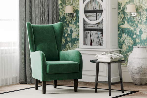 Модель «Шеффилд» - кресло с прямой спинкой для любителей классики. Каминное кресло ― самая классическая трактовка из всех существующих современных вариантов вольтеровского кресла. В нем остались высокие ножки, глубокая посадка, а прямая спинка и «ушки» с высокими подлокотниками прячут от суеты. В такое кресло легко сесть, но трудно подняться, настолько оно уютное. "Шеффилд" отлично подходит для классического интерьере, так и для современного: минимализм, лофт, ар-деко и даже как акцент в скандинавском и хай-тек стилях. Модель выполнена в тканях велюр и рогожка. Цветовые комбинации от молочно-белого до насыщенного изумрудного. Ножки выполнены из дерева.