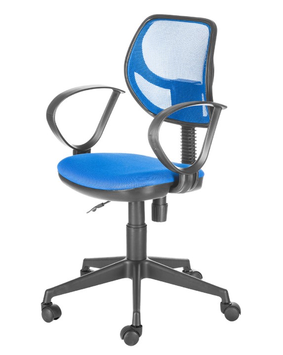Кресло на колесах Флеш Рондо обивка ткань-сетка синее, подлокотники пластик, крестовина пластик, механизм профи