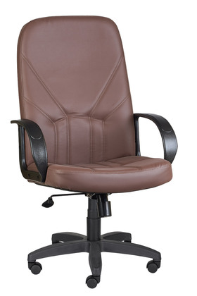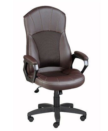 Кресло на колесах Сатурн ультра кожзам/сетка коричневый, крестовина пластик, подлокотники с мягкими накладками, механизм качания