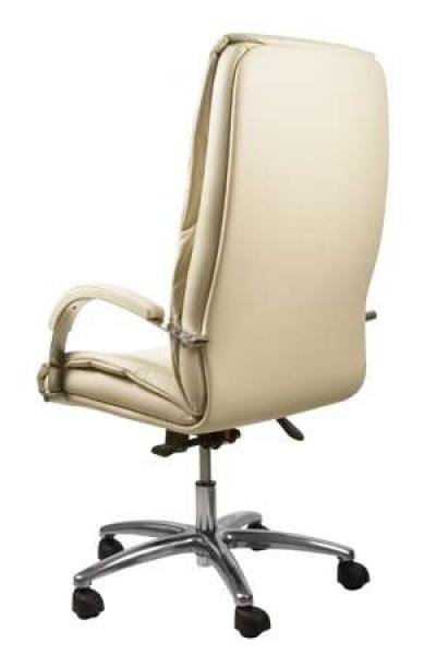 На фото изображен вариант кресла рукводителя Шеф с хромированными подлокотниками и хромированной крестовиной в светло-бежевой коже.