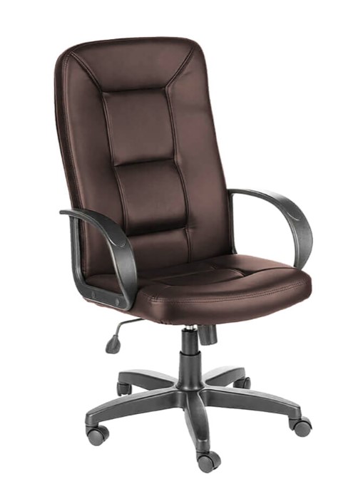Кресло на колесах Сенатор ультра кожзам коричневый, крестовина пластик, подлокотники пластик, механизм качания