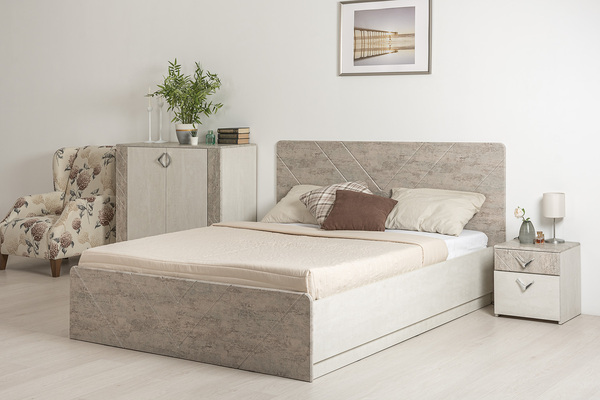 Ортопедическое основание с подъемным механизмом входит в комплект. Корпус: ЛДСП 16 мм. Изголовье и изножье: МДФ 16 мм.