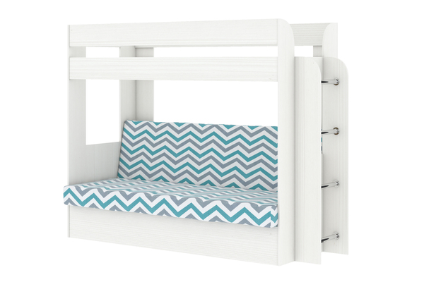 Кровать детская двухъярусная Карамель 75 бодега светлая (WILLY MINT) бирюзовые зигзаги (сборка на любую сторону) спальное место верх 80х190, низ 120х185