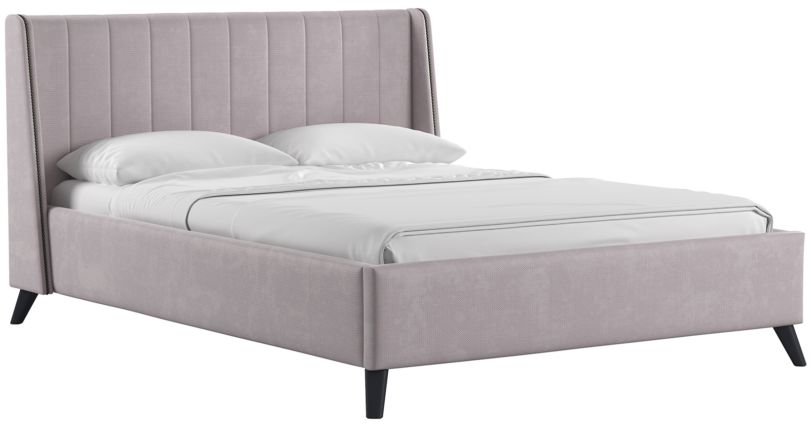 Актуальный дизайн интерьерной кровати МЕЛИССА – для истинных ценителей трендовых тенденций в мебельном дизайне. Изголовье кровати с боковыми накладками, декорированными мебельным молдингом-гвоздиками, создает атмосферу приватности, защищенности и комфорта.