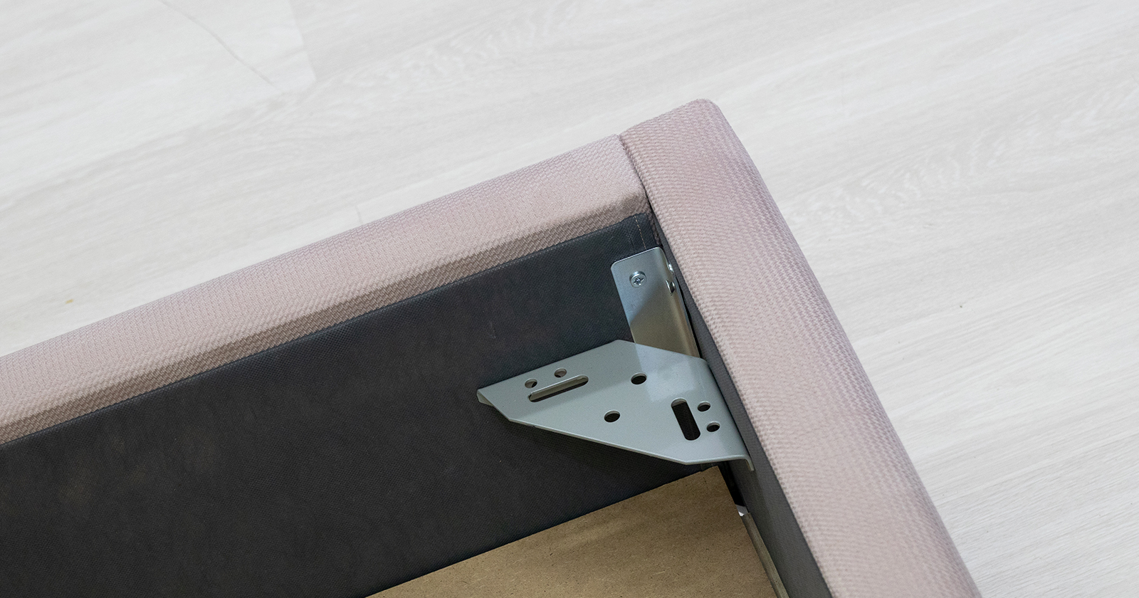 Основание кровати укомплектовано матрасодержателями. Жесткое кроватное дно из МДФ 6 мм. Задняя стенка изголовья выполнена в тех. ткани (спанбонд)