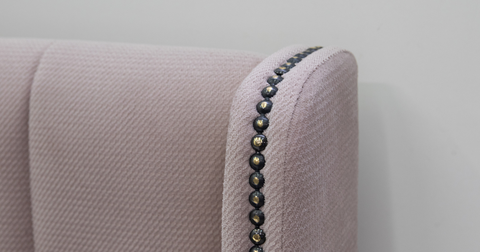 Изголовье с боковыми накладками, декорированными мебельным молдингом-гвоздиками