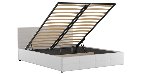 Кровать Синди 160 экокожа белый с ортопедическим основанием и подъемным механизмом