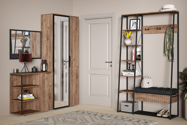 Прихожая Гранд композиция 1 дуб крафт табачный, кожзам holst black