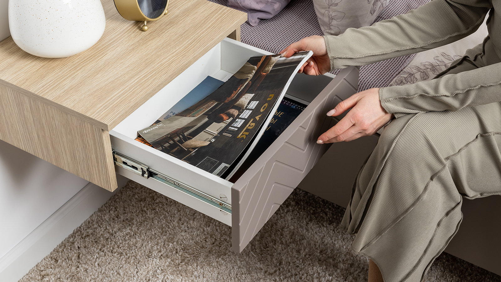 Тумба прикроватная Амьен 16.08 плэйн, веллюто капучино ПВХ