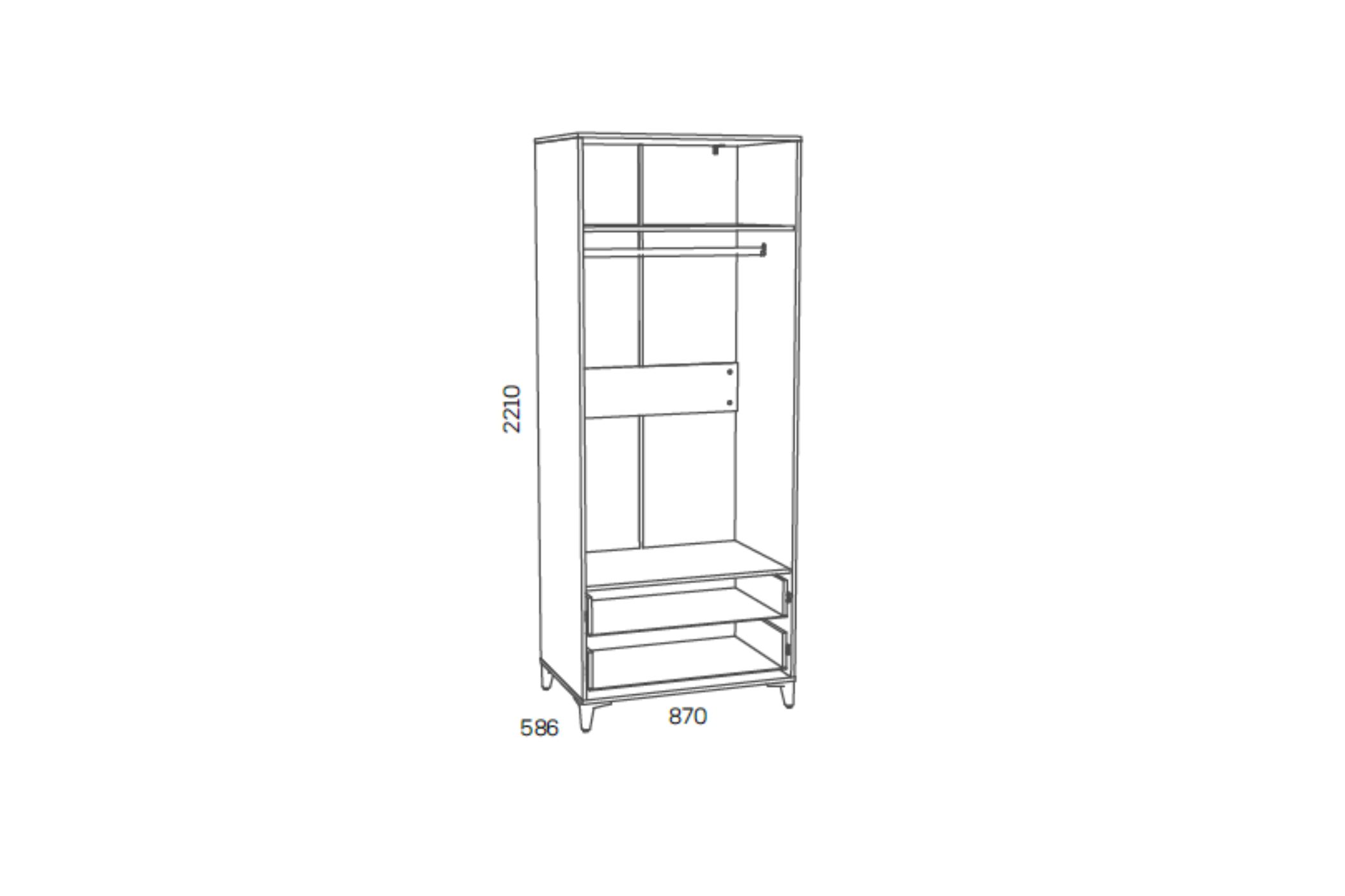 Шкаф «Морти» на высоких изящных ножках предназначен для тех, кто любит простоту и минимализм. Шкаф обладает модным сочетанием материалов и, благодаря характерным декоративным особенностям, понравится всем поклонникам скандинавского стиля. Отделение с полкой и штангой предназначено для хранения одежды на вешалках, головных уборов, коробок с аксессуарами. Два выдвижных ящика предназначены для сложенной одежды, аксессуаров, личных вещей.