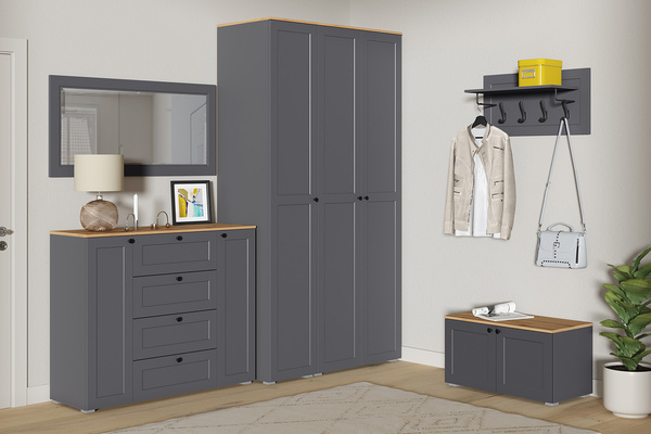 Шкаф для одежды Остин 13.224 серый графит, дуб вотан, серый графит ПВХ