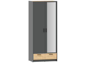 Шкаф для одежды Оттавия НМ 011.80 с зеркалом, антрацит, дуб крафт золотой