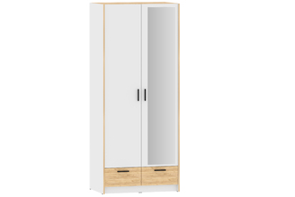 Шкаф оснащен двумя выдвижными ящиками для вещей, которые плавно и бесшумно скользят за счет шариковых направляющих, а также овальной штангой для хранения одежды на вешалках. Шкаф можно дополнить другими модульными шкафами из одноименной коллекции.